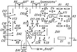 Радиочастотный сиrнал с антенны через разделительный конденсатор С1 поступает на колебательный контур L 1 С2, который осуществляет предварительную селекцию сиrнала.