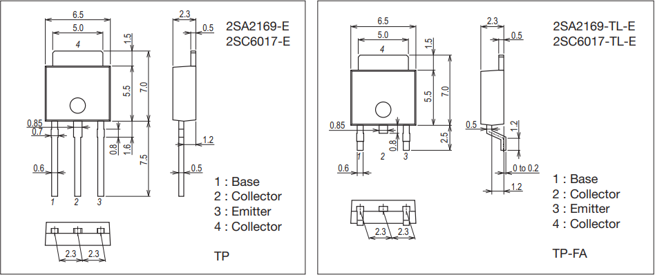 | 2SA2169 | A2169 | NPN | 10 | 20 | 200 | 500-630 | TO-251\252 |